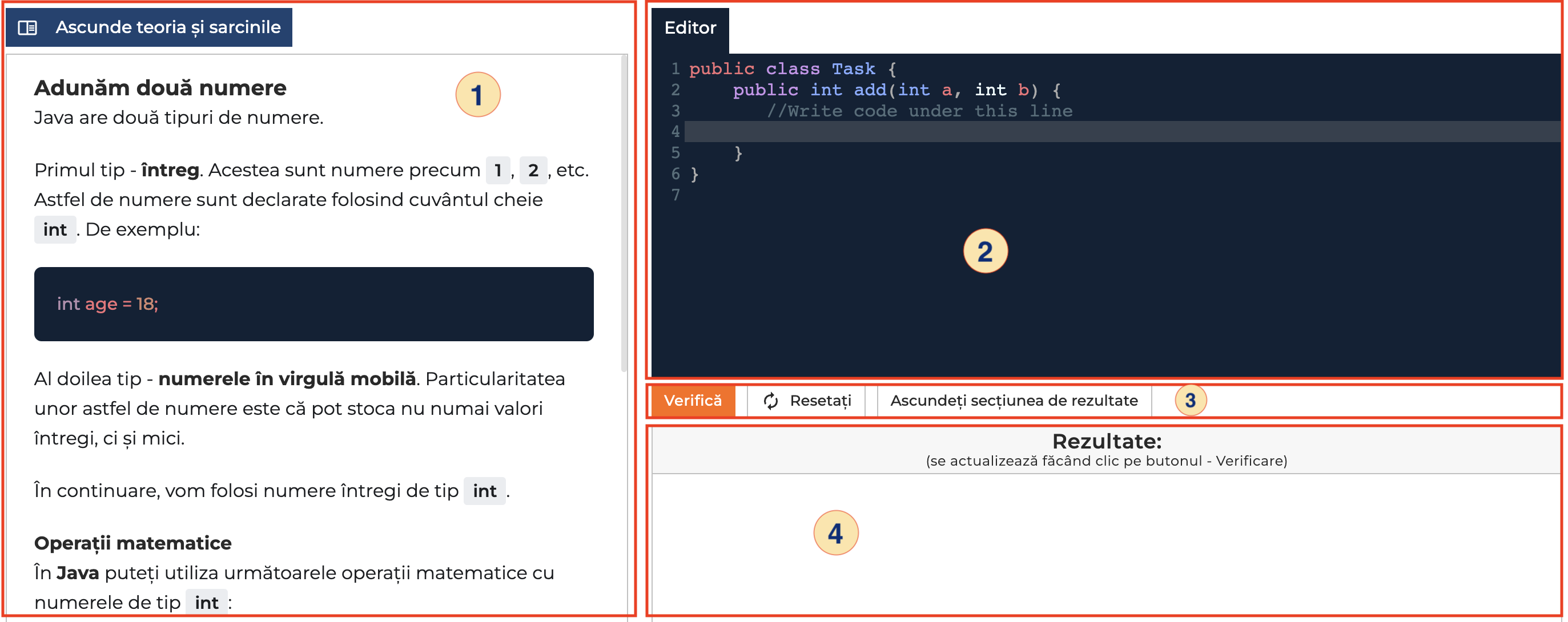 1.1. Butonul "Ascunde teoria și sarcinile" din partea de sus a secțiunii